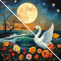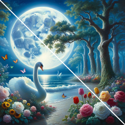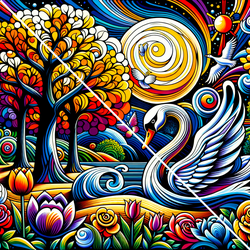 Emotional Impact: Natural imagery often triggers positive emotions, such as tranquility, joy, or nostalgia. The graceful swan, vibrant flowers, and serene lake can serve as a reminder of purity, elegance, and the simplicity of nature, offering an emotional escape from daily stress.